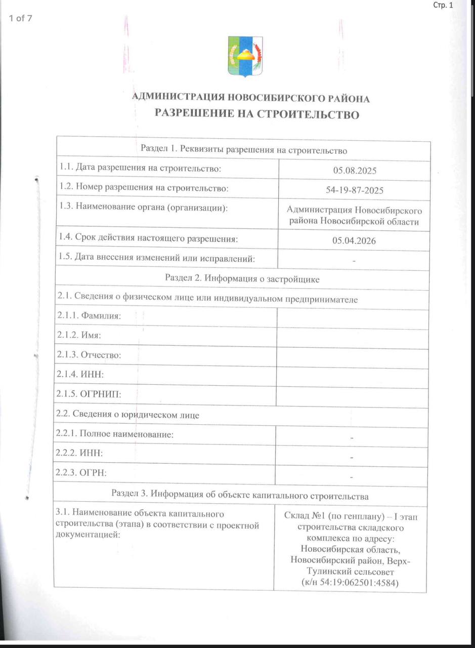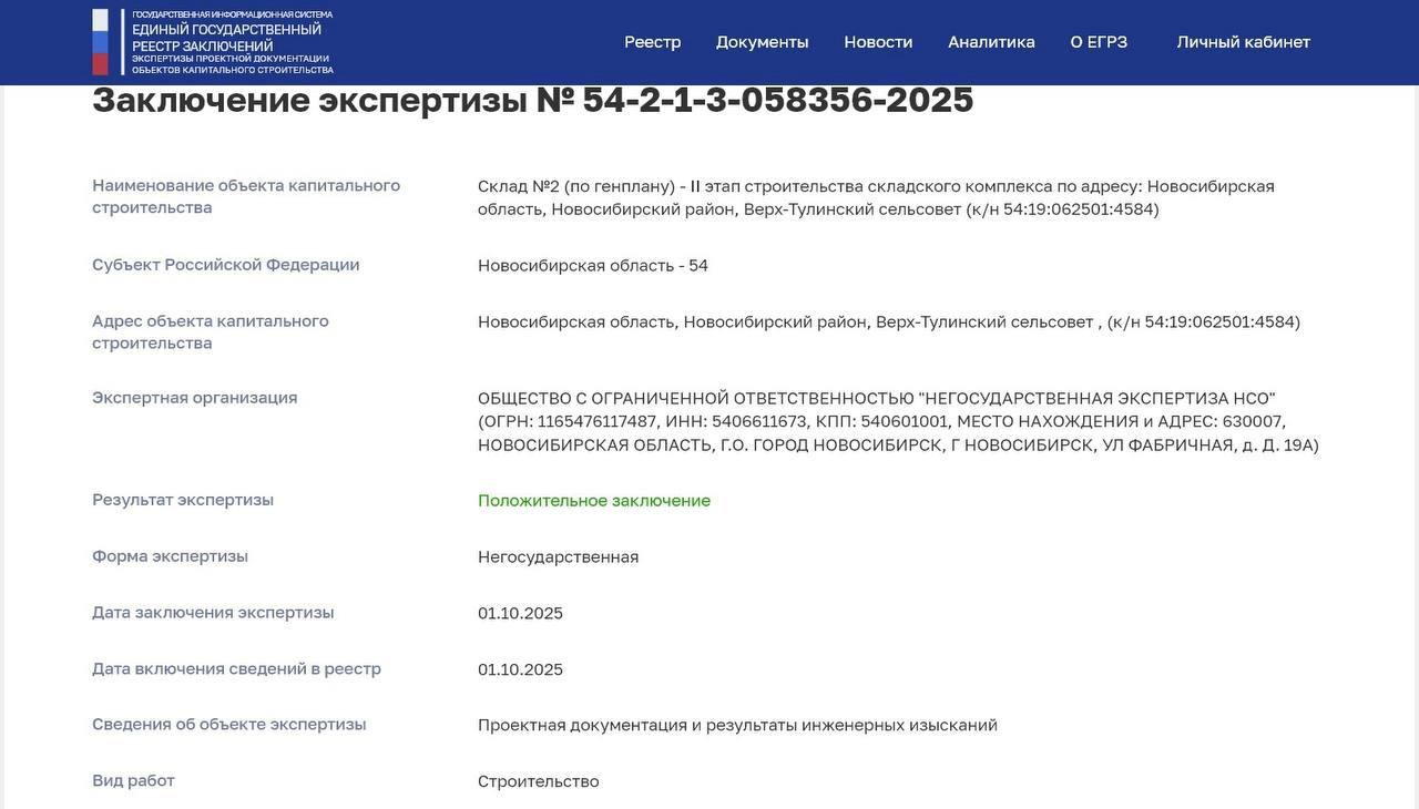 * Объект: Склад площадью 2800 кв. м. (Объекты менее 1500 кв.м. не попадают под экспертизу)